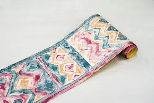 Színes, geometriai mintás tapéta bordűr 26344