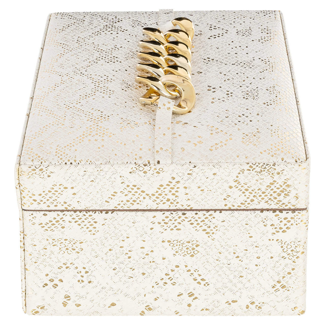 A fehér felület finoman strukturált, a fedélre helyezett aranylánc motívum karaktert ad az összképnek – így a Noell doboz nemcsak funkcionális, hanem dekorációs tárgy is. Tökéletes választás hálószobába, gardrób polcra vagy épp egy modern nappaliba.